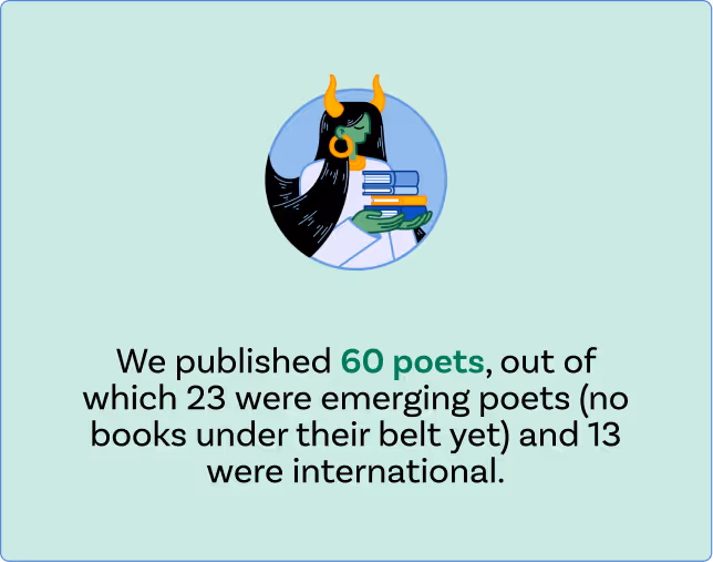 Karan Kapoor is the Editor-in-Chief of ONLY POEMS and Strange Pilgrims. His poems have appeared in Best New Poets, AGNI, Shenandoah, Colorado Review, and elsewhere, fiction in JOYLAND and the other side of hope, and translations in The Offing and The Los Angeles Review. He also serves on the editorial board of Alice James Books.