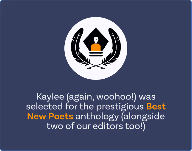 Shannan Mann is the Creative Director of ONLY POEMS and Strange Pilgrims. Her upcoming poetry collection God Has Nothing To Do With This was a finalist for the Michael Waters Poetry Prize. Awarded the Emily Morrison Short Story Award, Irene Adler Essay Prize, and Palette Poetry Love & Eros Prize, she’s also placed for the Rattle Poetry Prize, Auburn Witness Prize, and the Foster Poetry Prize. Her poems appear in Poetry Daily, Black Warrior Review, Missouri Review, Poet Lore, Gulf Coast, The Literary Review of Canada, & elsewhere. She also runs Sub Club.