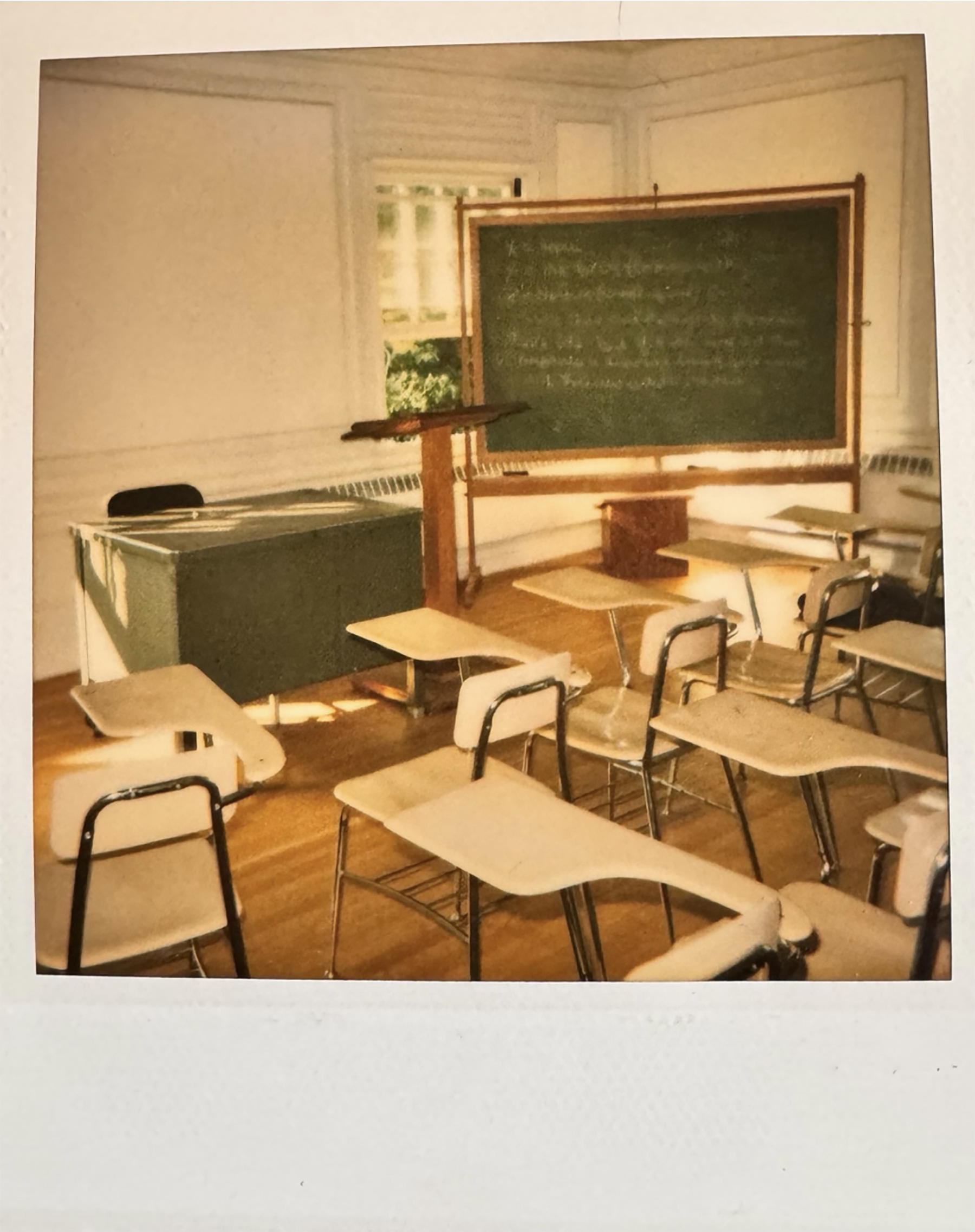 During the week, I was often the first person to arrive and the last to leave. I haunted the building on weekends. My students dropped their mouths when they saw me on campus proper—they thought perhaps I’d been exiled to the White House and couldn’t escape. Granted, I didn’t have much else to do, but I also loved the idea of having an office. If I got bored, I wandered. I loved the austerity. The emptiness. The smell of old wood and dust and metal and carpet. The crazy wallpaper in the classrooms, the rickety old mobile chalkboards. The heavy door at the front of the building, whose fragile window pane rattled when you shut it too hard.