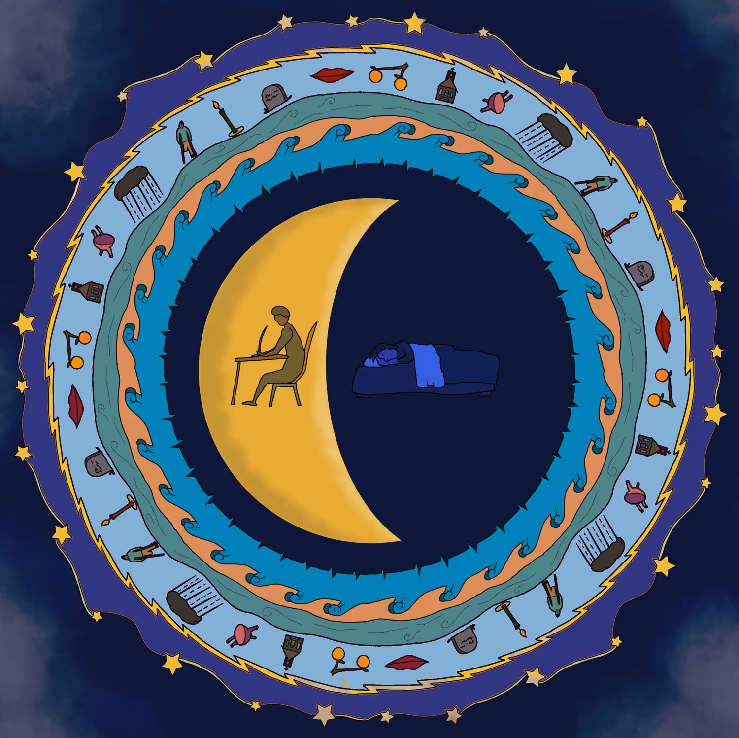 in the knotted knolls of the night. The moon chaps my mouth.